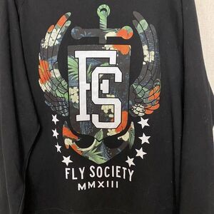 Full front panel floral graphic and logo on the front. Solid black base. Good gently used condition with no holes or stains.