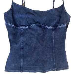 Y2K Forever 21 Black Washed Corset Style Spaghetti Strap Cami Grunge Indie Large
