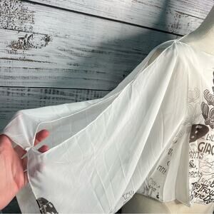 Y2K Forever 21 Cold Shoulder Open Sleeve Chiffon Crop Top Medium Artsy Collage