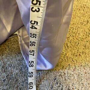 This Y2K Forever 21 dress is a stunning light purple satin maxi dress with a halter tie neck, perfect for a party or cocktail event. The sleeveless dress features a zip closure and is made of a lightweight polyester and spandex blend, making it comfortable for all-day wear. The long dress exudes a romantic and love-themed vibe, with accents like silver and violet hues and a hint of metallic glamour. Ideal for summer and spring, this dress is a stylish and feminine addition to any wardrobe.
