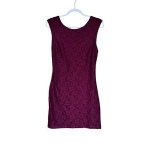 Y2K Forever 21 Sz L Burgundy Dark Romantic Grunge Lace Overlay Mini Party Dress