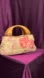 Fossil Hand Bag Tote Canvas Floral Print wooden Ring Handle Leather trim Beige Pink Multicolor Three compartments center Zipper closure has interior wall zip pocket excellent condition has strap hoops no straps included bottom protective leather, no key hang tag. Interior is lined with beige fabric and has a zip pocket.: measurements are approximately in inches L 11” X H 6.5” X 3" Deep