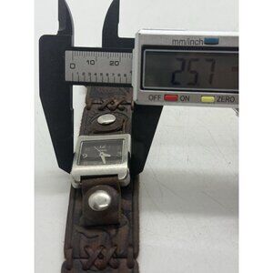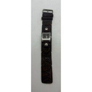 Y2K Fossil WB-1028 Silver Tone Brown Wide Leather Band Analog Women's Watch BOHO