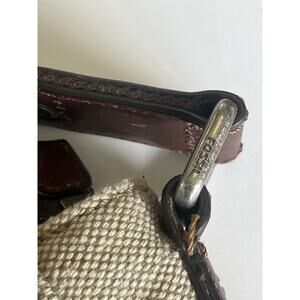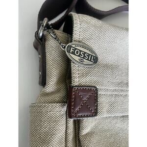 Y2K Fossil Woven Canvas Messenger Laptop Bag Crossbody Tan Travel Leather