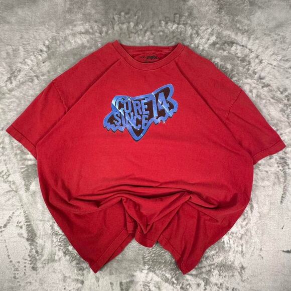 Y2K Fox Racing Red “Core Since 74” Blue Logo Graphic T-Shirt Size XXL