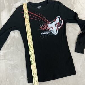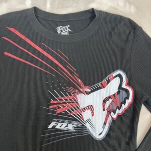 Y2K Fox Racing Shirt Womens Small Black Waffle Knit Thermal Fitted Moto Biker