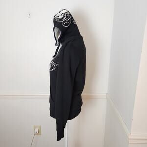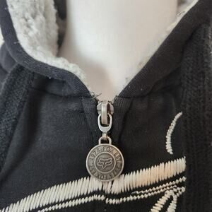 Y2K Fox Racing Zip Up Hoodie Jacket Sz XS Small Womens Black Embroidered Sherpa