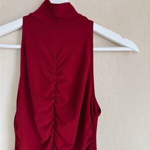 Y2K Frederick’s of Hollywood Mini Dress Mock Neck Red Ruched Sexy Form Fitting