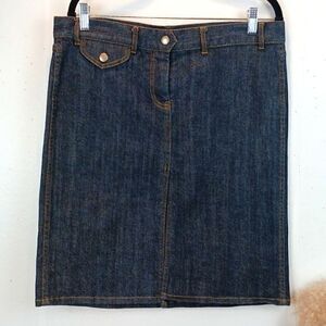 Y2K French Connection dark wash denim fitted skirt with front slit size 10