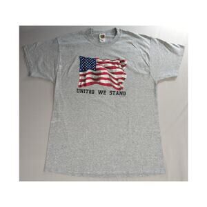 Y2K Fruit Of The Loom United We Stand USA Flag Graphic T Shirt Gray XL