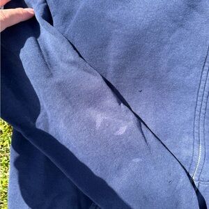 -used lightly, very small stain on the arm and a very small snag whole, no other flaws
