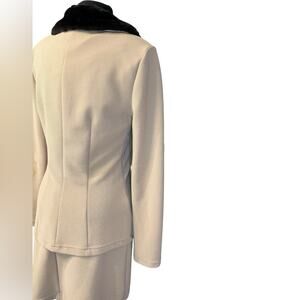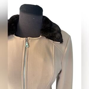 Y2K Fur Collar Ribbed Stretch Knit Dress Jacket Coord Set Size S Mob Wife Glam