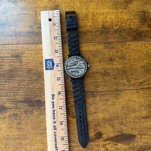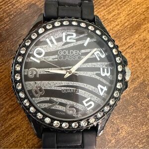 Y2K GOLDEN CLASSIC Zebra Print Chunky Watch Black Rubber Band Bling Goth Glam