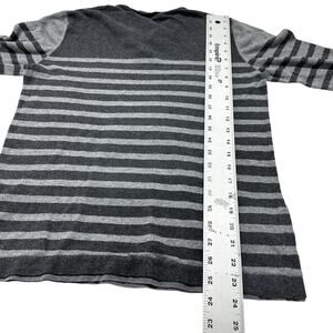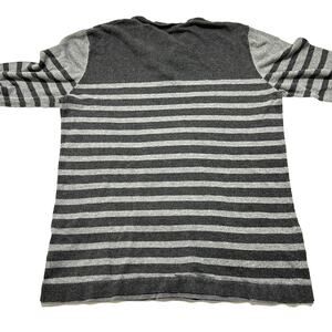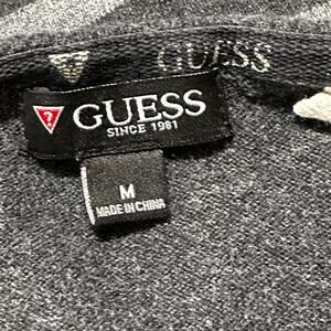 Y2K GUESS Sweater Women Size M Gray Striped Cotton Preppy V Neck Long Sleeve
