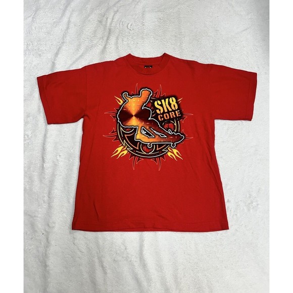 Y2K GWP Sport Skate Core Red Graphic T-Shirt Youth Size XL Skateboarding. Please see pictures for condition and measurements for proper sizing and fit.