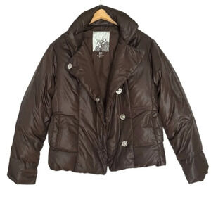Y2K Gap Brown Boxy Cropped Snap Front Down Puffer Jacket Size