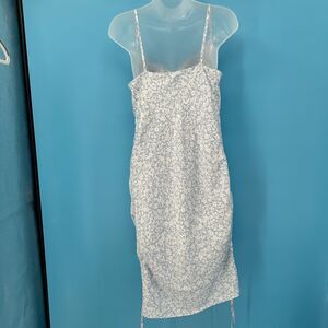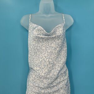 Y2K Garage Blue Floral Ruched Slip Dress Small Cowl Neck Adjustable Straps
