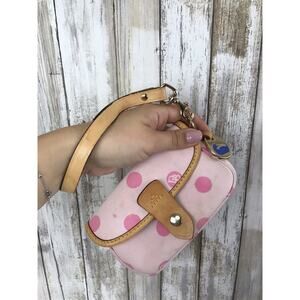 Y2K Gen Z Dooney & Bourke Mini Pink Polka Dot Canvas Wristlet Pouch Clutch VTG