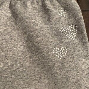 Crafted of stretch French terry, the women's sweatpants from Generation Love are embellished with heart rhinestones throughout the front and back of the pants.