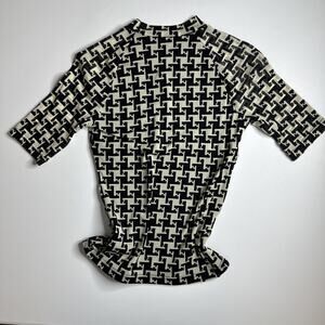 Y2K Geometric Print Ruched Top High Neck Cyber Indie Mod Retro M Minimalist