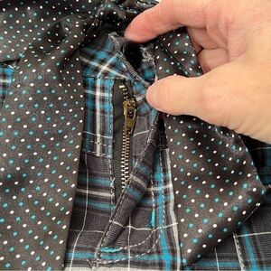 Playful, edgy, and full of Y2K vibes — this Faded Glory mini skirt features a classic gray plaid print with pops of teal and white, paired with a polka dot sash belt. The pleated design, patch pockets, and cotton comfort make this skirt both cute and functional. Perfect for pairing with boots, tights, or a fitted graphic tee.