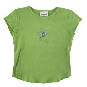 • A Total Girl green short sleeve top with cute embellishments, adding sparkle and personality.