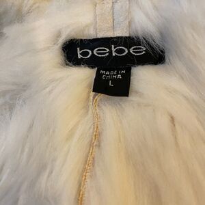 Y2K Glam VTG Bebe Penny Lane Faux Fur Suede Large Hooded Winter Coat Cream Pink