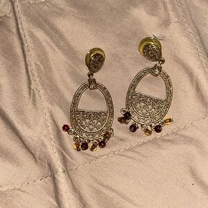 Chandelier Dangle Earrings Gold Beads Stunning 3”