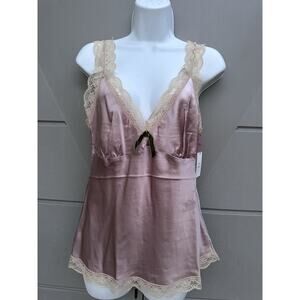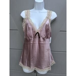 Y2K Gold Hawk Luxury Silk Babydoll Top Sz M Tan Mauve Lace Fairycore Coquette