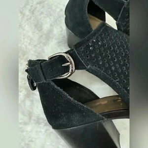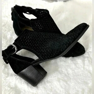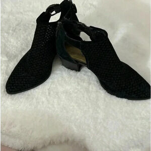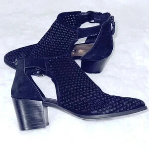 Y2K “Grace Anne” Black Suede Buckle Perforated Heeled Booties Boots Anne Klein