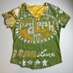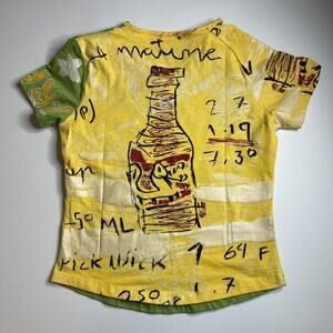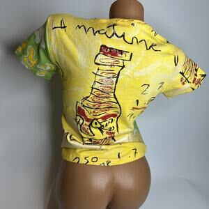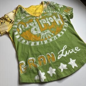 Y2K Graphic Print Mixed Sleeve Colorblock Tee Shirt 2000s Streetwear Pop Art M