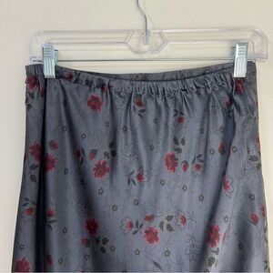 Harold's Gray and burgundy Floral Print 100% Silk Slip Midi Skirt Sz 6 Dark Fairycore Grunge Cottagecore