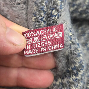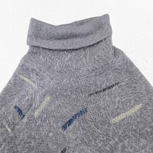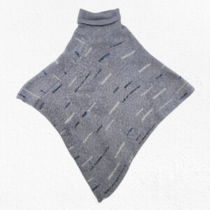 Y2K Gray Fuzzy Acrylic Poncho Cowl Neck 2000 Boho Abstract Dash Pattern One Size