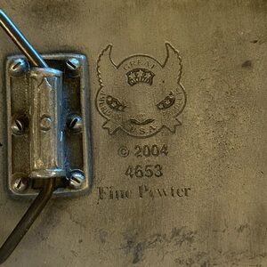 intricate detail in the pewter really make this buckle special . Mary has some water damage close up to see in photo . still a fantastic piece even so .