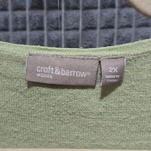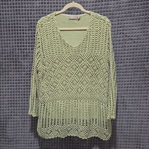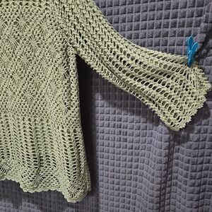Y2K Green Crochet Sweater Top Sz2X Open Knit Boho Fairy Cottage Coastal Grandma