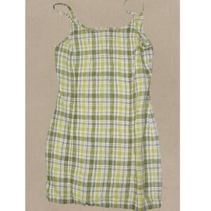Y2K Green Plaid Linen Mini Dress - Evolution - Size S