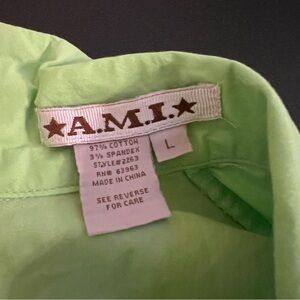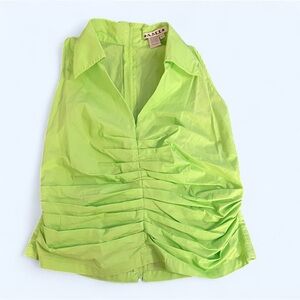 Y2K Green Ruched Blouse by A.M.I. Size Large Back Full Zip 2000s Club Top