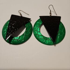 Y2K Green and Black Abstract Retro Earrings see measurements