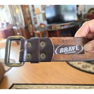 Y2K Grunge BRAVE BELTWORKS Leather Belt Veg-Tanned Wide Brown Brass Buckle sz 38