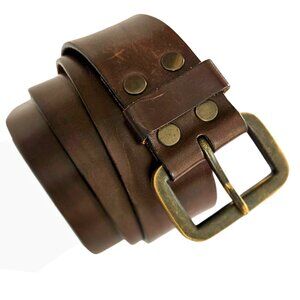 Y2K BRAVE BELTWORKS Classic Brindle Leather Belt - Antique Brass Buckle - Size 38