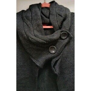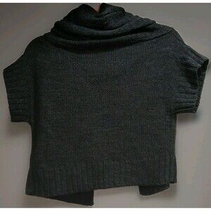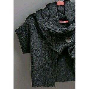 Y2K Grunge Derek Heart Cropped Knit Button Shawl Cardigan Sweater Gray L