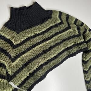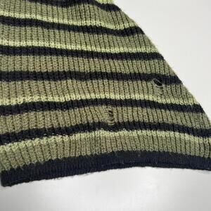 Y2K Grunge Distressed Cropped Sweater Green Black Striped Bell Sleeve Romwe M