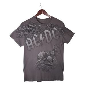 Y2K Grunge Emo AC / DC Skull Cross T Shirt Size Medium Affliction Style