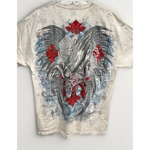 Y2K Grunge Goth Affliction Style Devotion Cross Angel Wings Tee Size XL