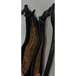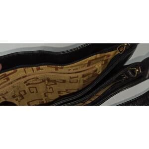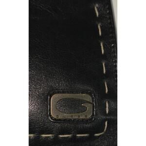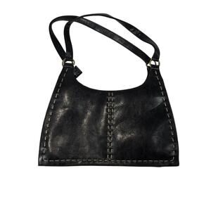 Guess 2000s black leather shoulder bag with thick contrast stitching and double front zip pockets. Classic Y2K design with silver hardware and structured shape, perfect for adding that early 2000s vibe to any outfit. Adjustable strap for shoulder carry, sleek black leather finish, and practical pockets make it both stylish and functional. A true retro closet essential.