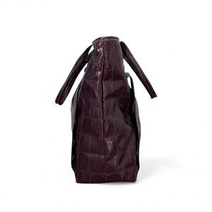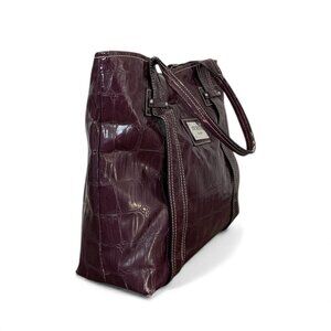 Y2K Guess Croc Embossed Tote Bag | Burgundy Patent Shoulder Bag