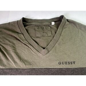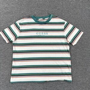 Y2K Guess Jeans Embroidered Floral V-Neck T-Shirt Cream White Men’s Large