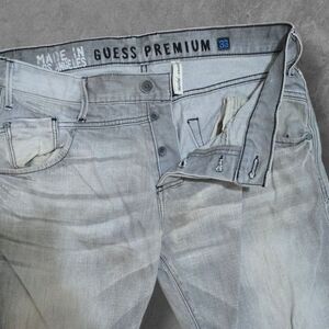Y2K Guess Premium Gray Light Wash Marshal Straight Leg Button Fly Jeans 33w