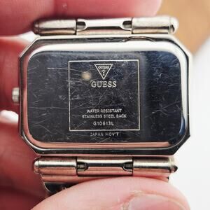 Y2K Guess Rhinestone Love Bling Watch Silver Tone Chain Link Wide Bracelet Band