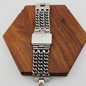 Y2K Guess Rhinestone Love Bling Watch Silver Tone Chain Link Wide Bracelet Band